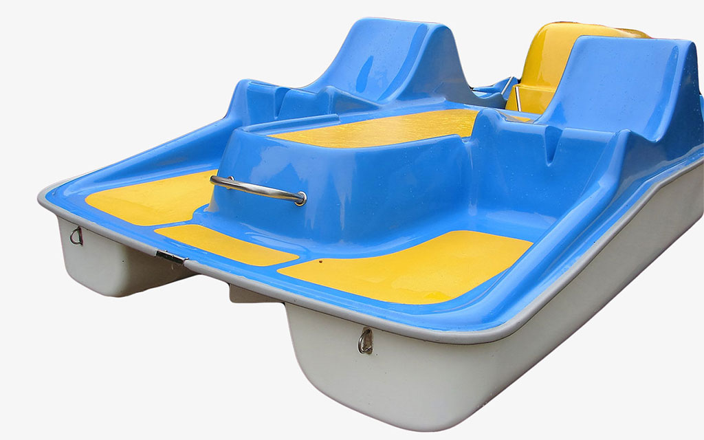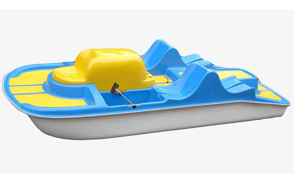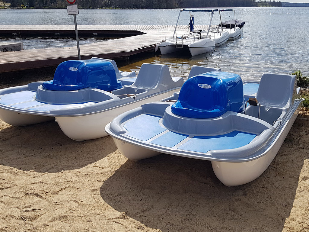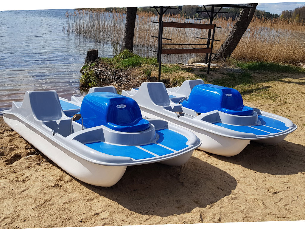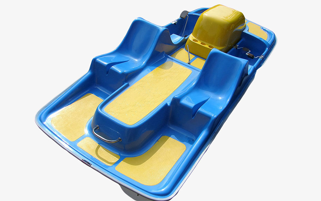 Das große Tretboot in traditioneller, bewährter Form, mit sehr bequemen Sesseln und einer Terrasse in der Mitte, die für verschiedene Gegenstände geeignet ist. Das gesenkte Deck im Heckteil zusammen mit dem zentralen Griff ermöglichen es, ins Wasser zu springen und problemlos auszusteigen.